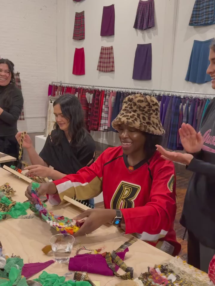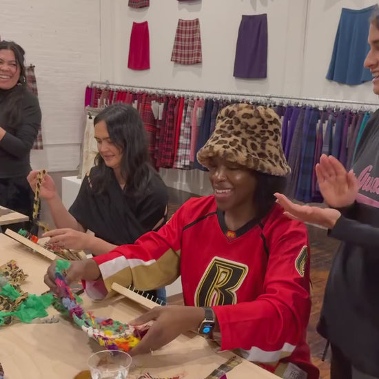 Registration includes all materials needed to make a small wall hanging. We will provide handmade wooden frame looms (yours to keep for an extra fee), warp thread and fabric scraps. While we’ll have enough supplies for everyone, feel free to bring anything special you'd like to add.