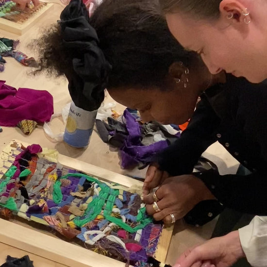 Registration includes all materials needed to make a small wall hanging. We will provide handmade wooden frame looms (yours to keep for an extra fee), warp thread and fabric scraps. While we’ll have enough supplies for everyone, feel free to bring anything special you'd like to add.