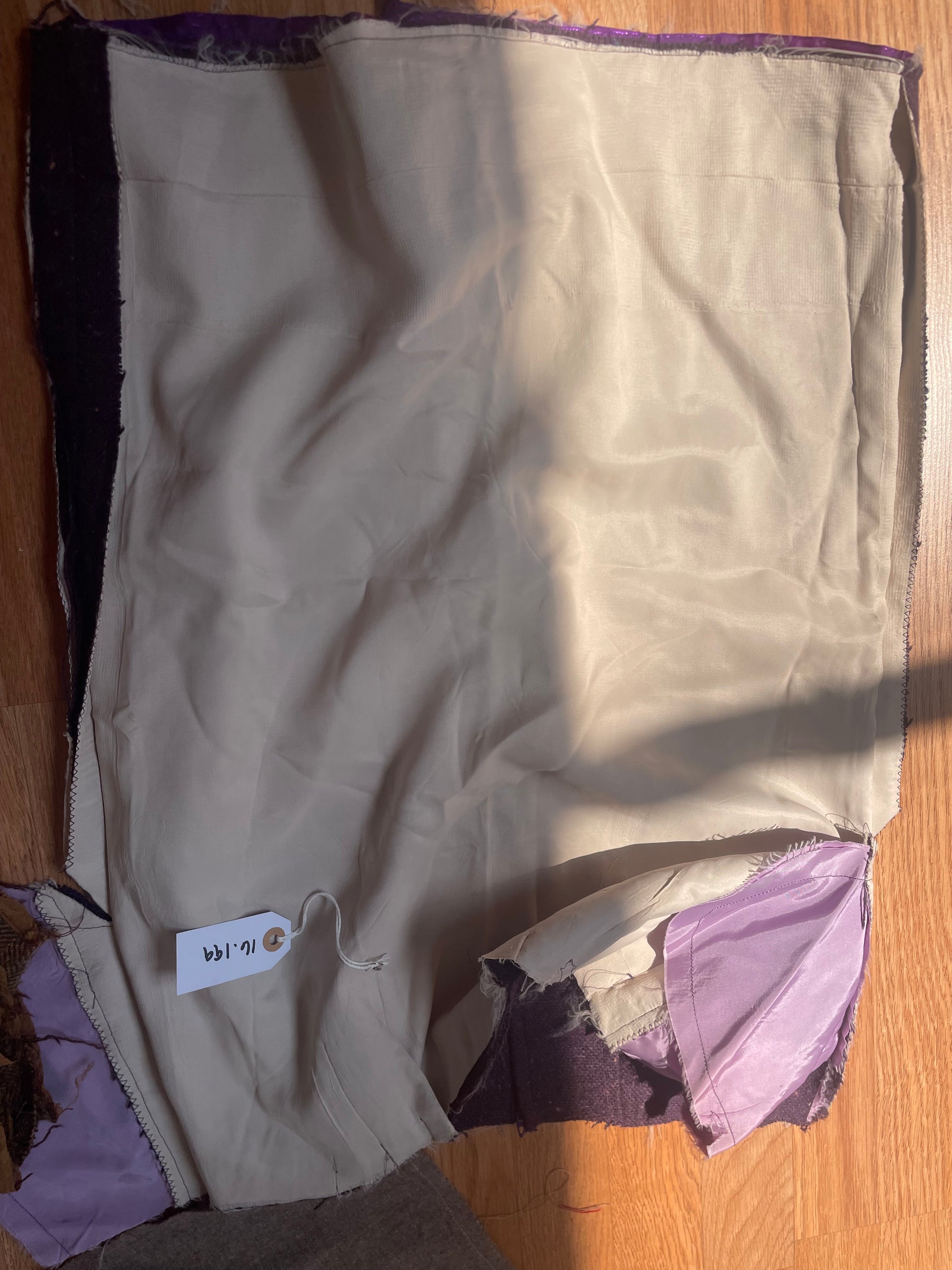 MATERIALS: Deconstructed wool skirts (the pink fabric is the lining of the purple skirt)