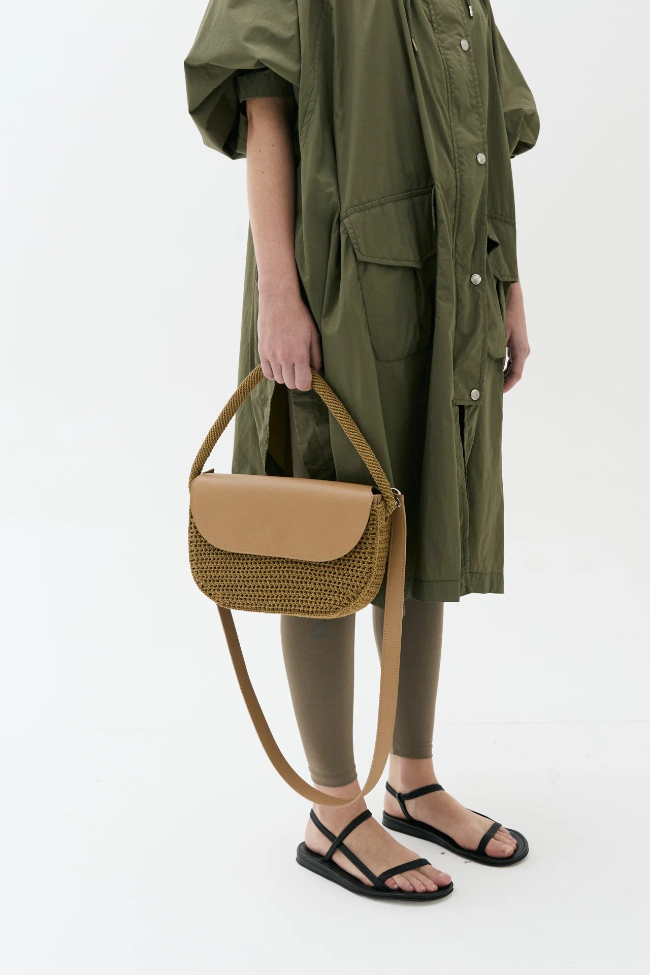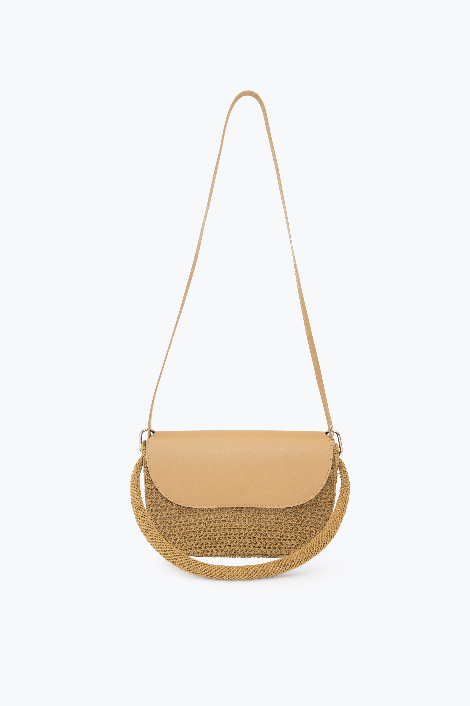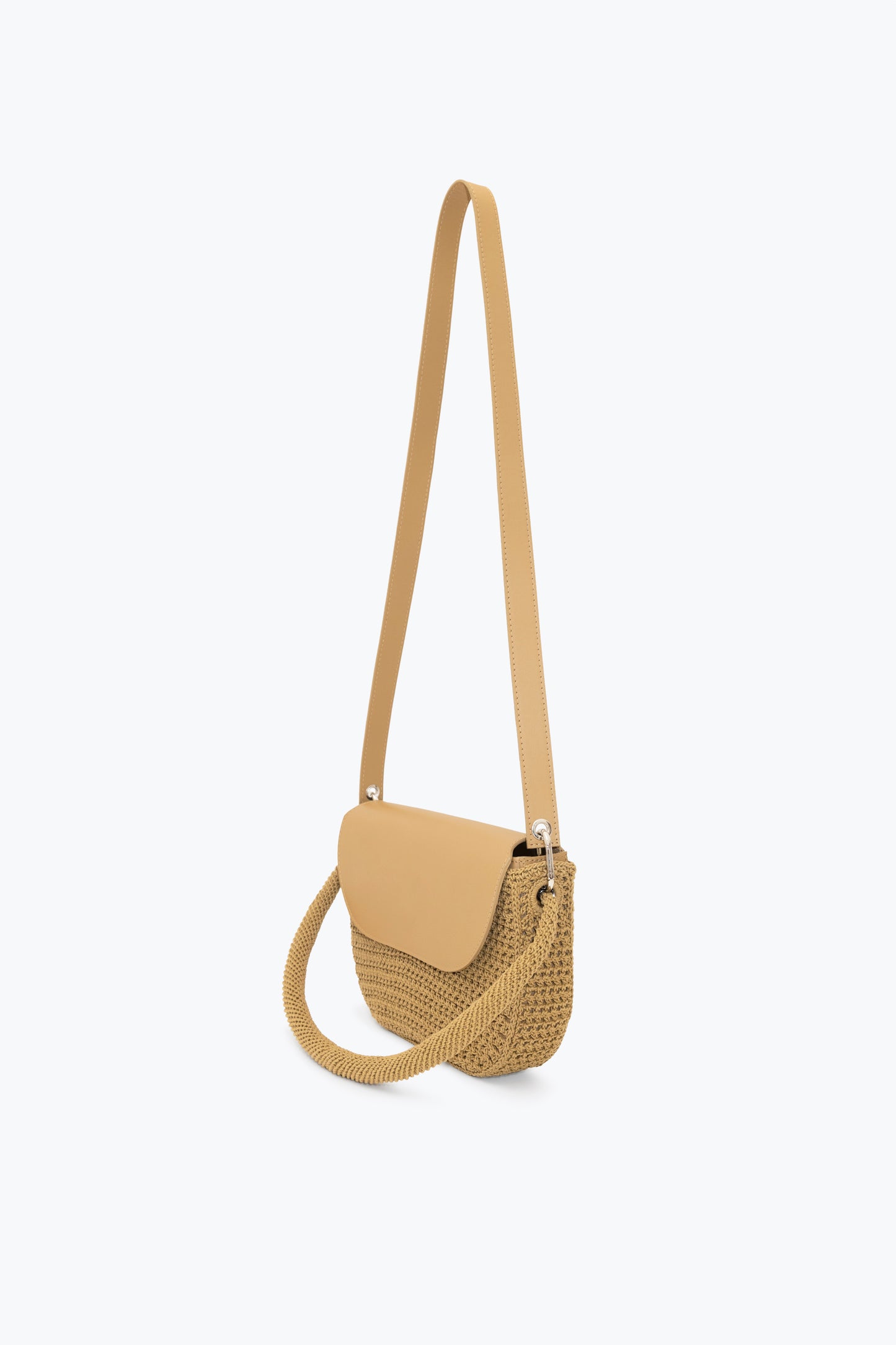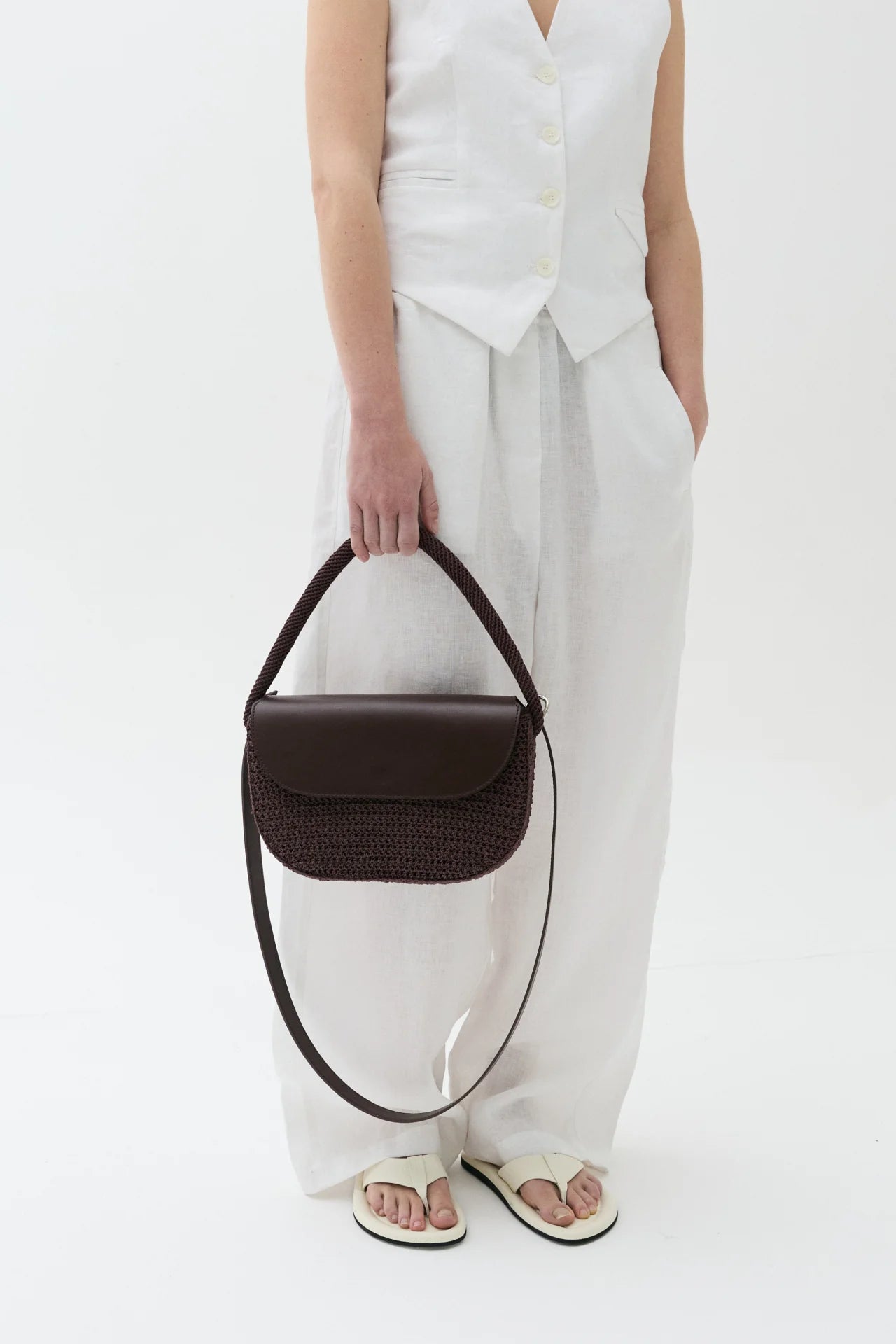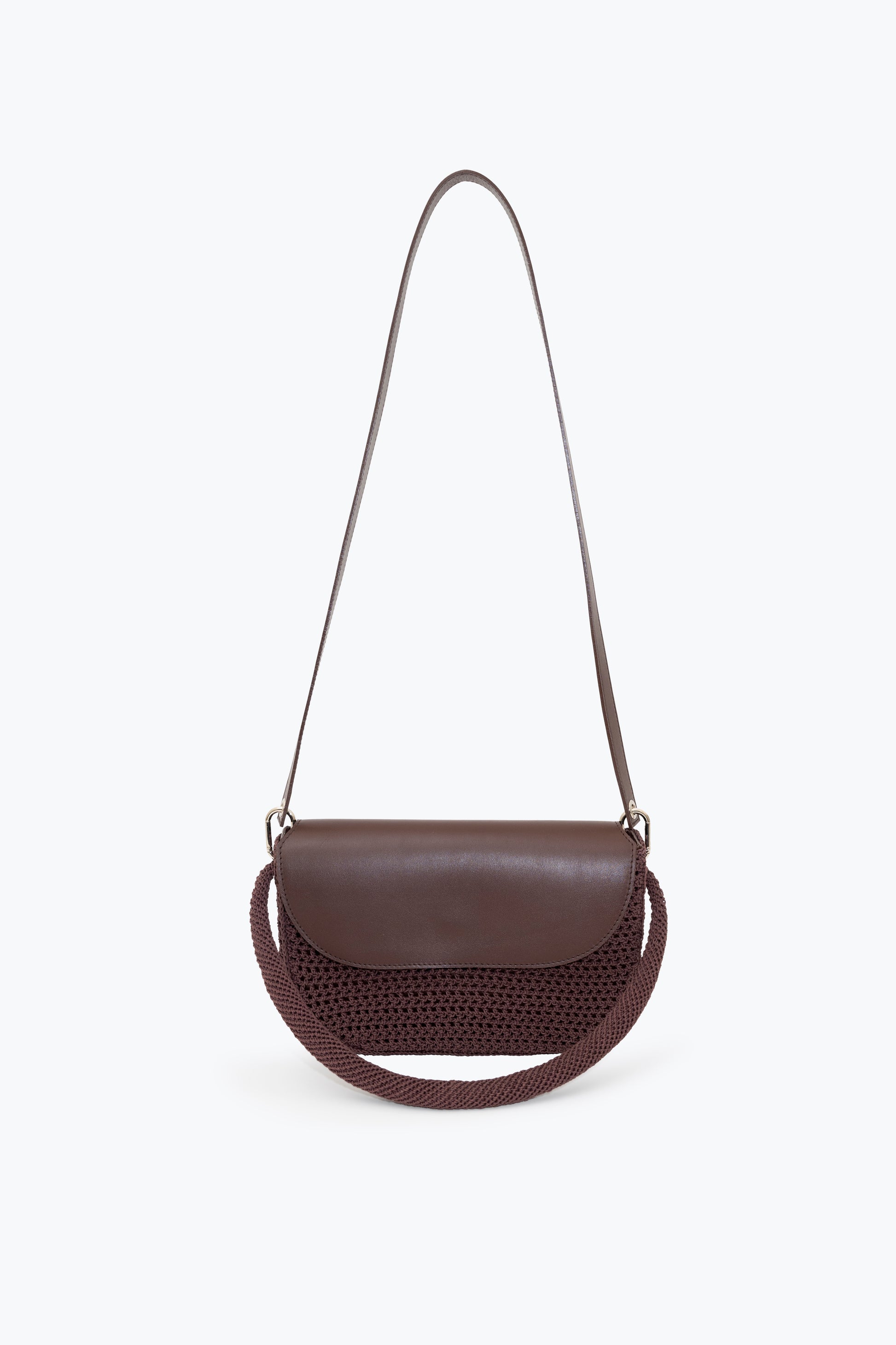Hand-crocheted openwork mesh in waxed cotton cord. Cowhide removable inner bag with detachable cowhide strap and hand-crocheted handle. Can be worn separately. 9 hours of knitting.