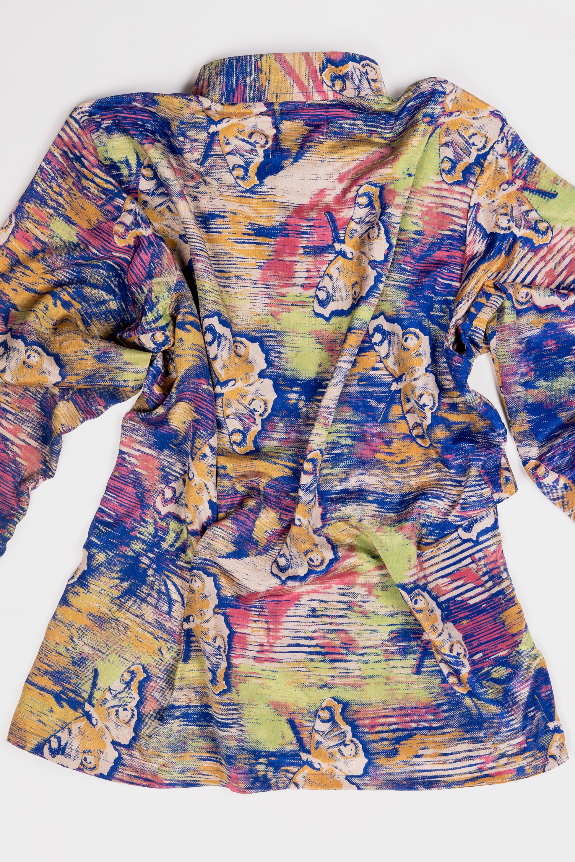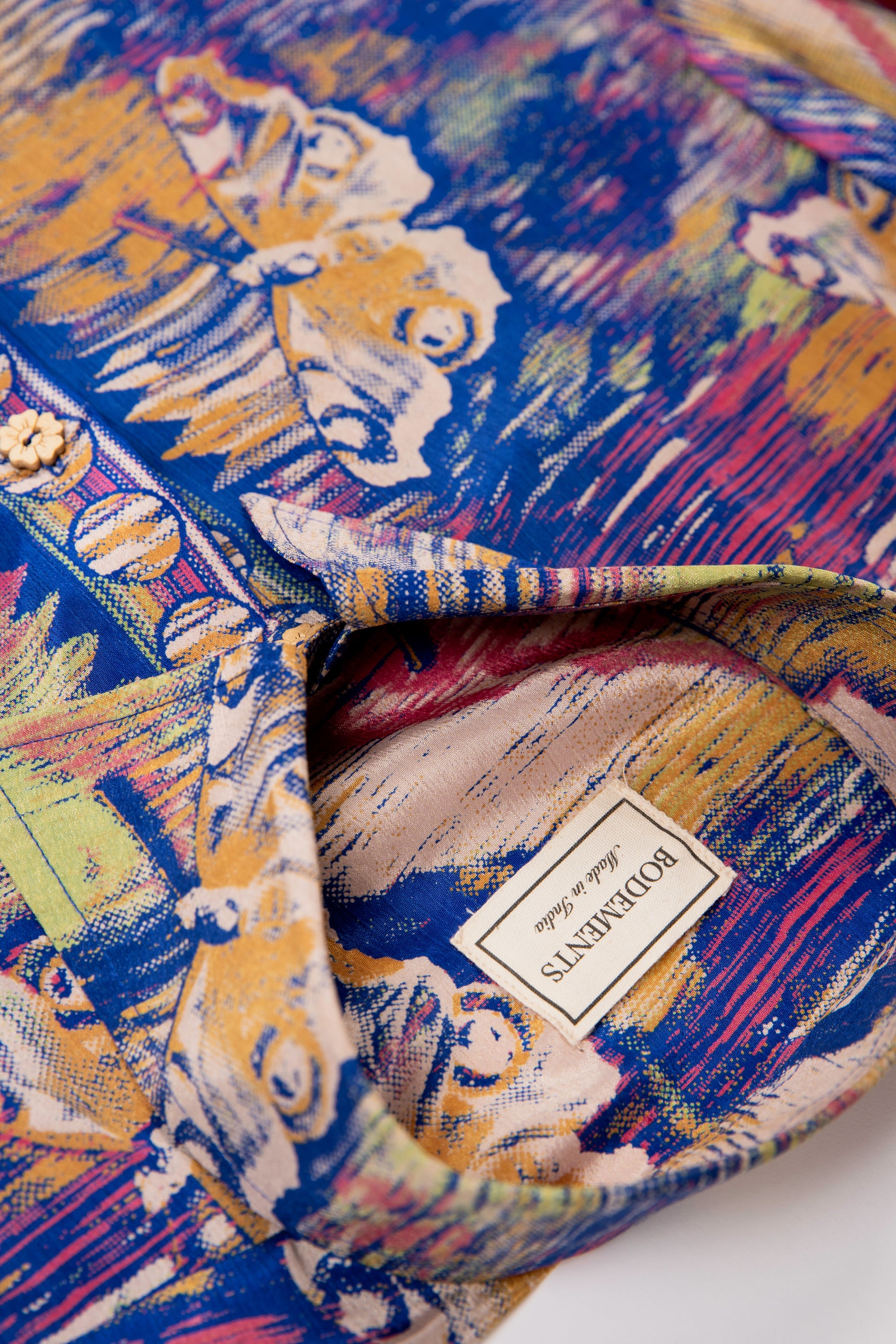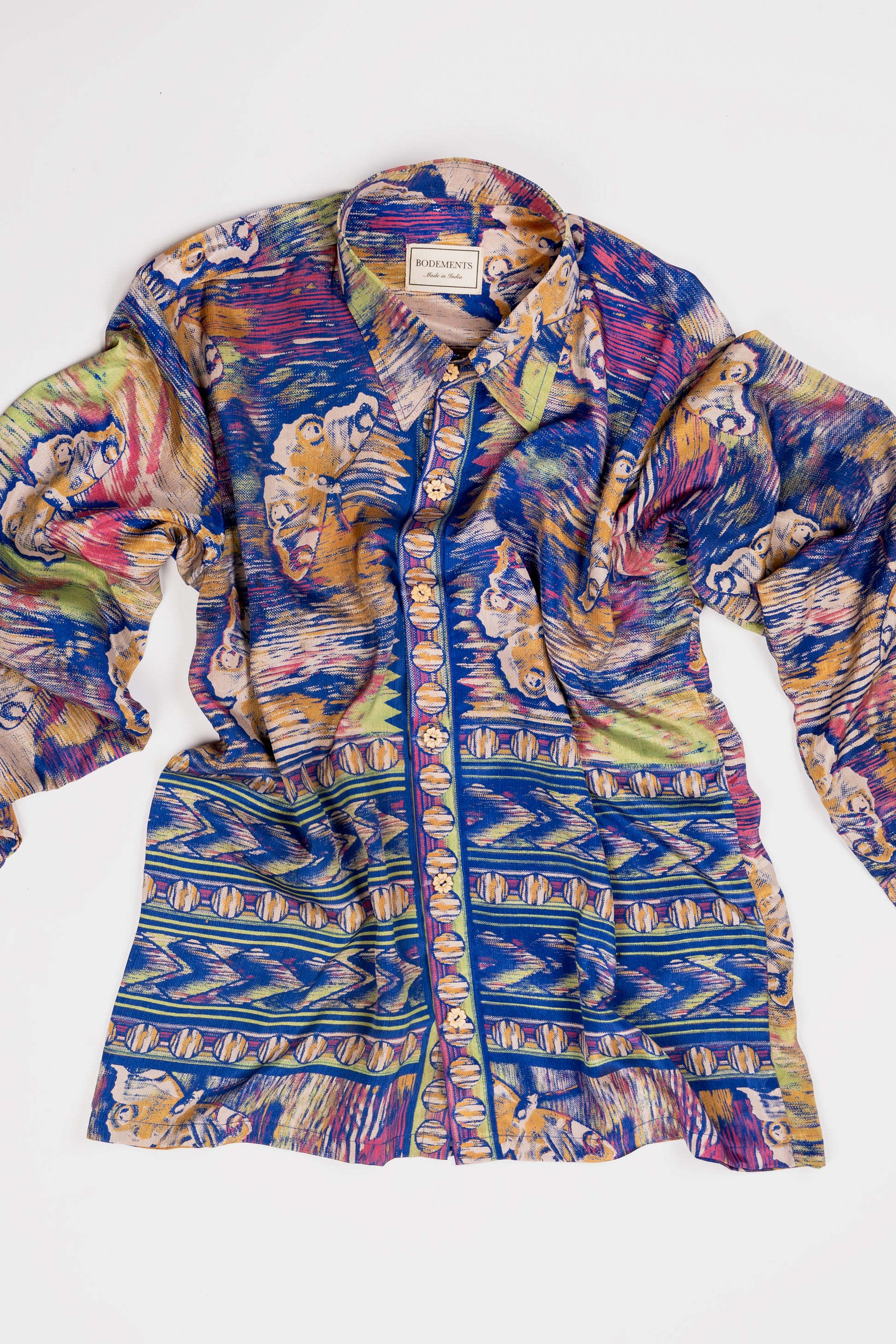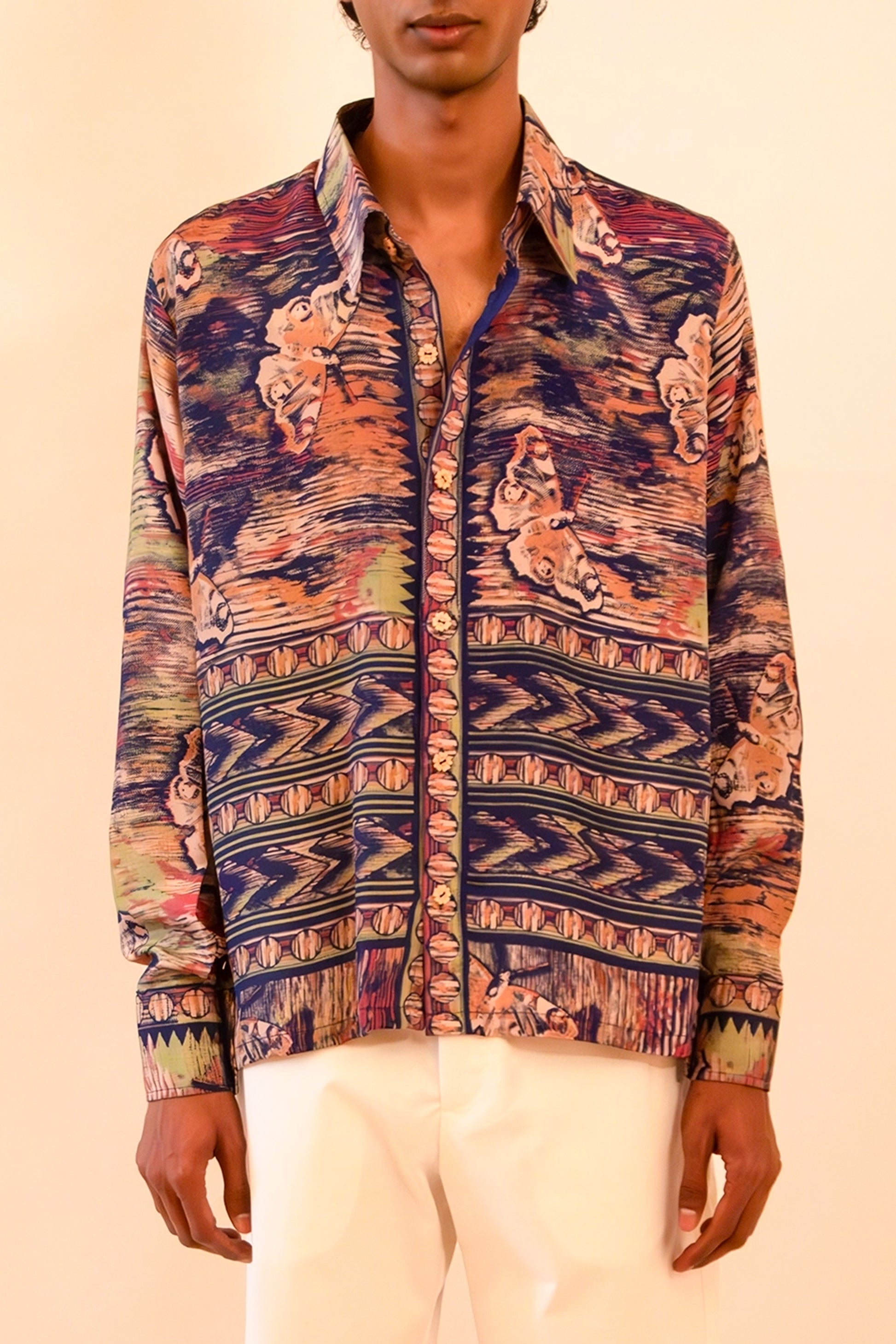 RAGA is a one-of-a-kind full-sleeve shirt, crafted from vintage fabric in a green printed fabric. Designed for a relaxer oversized fit, it drapes loosely over the body, offering easy breathability, and effortless movement.