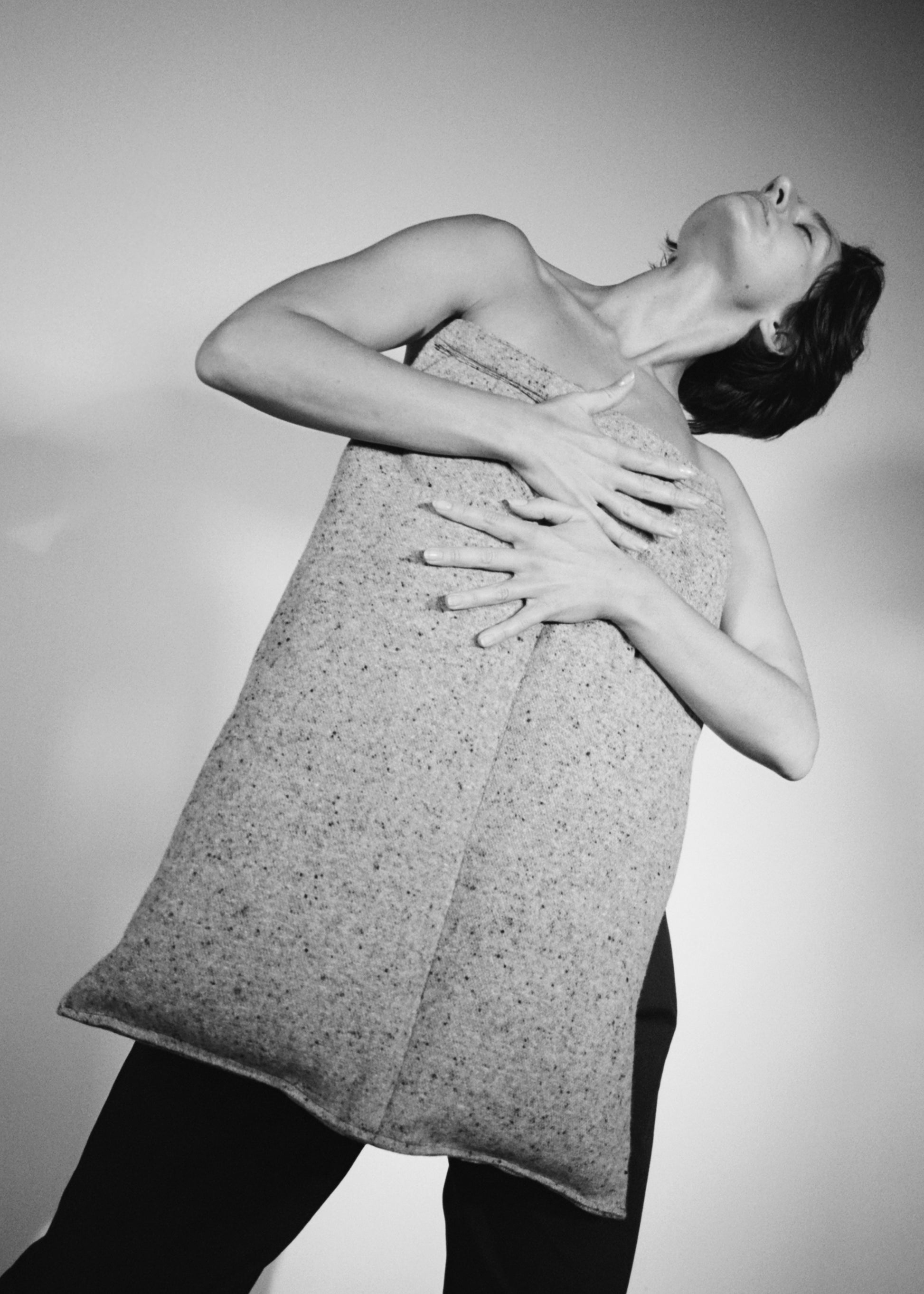 "The sealed skirt, dynamic in form, able to hang or be wrapped on the body. A ritualized soft sculpture as something which simply is." Carla Duarte